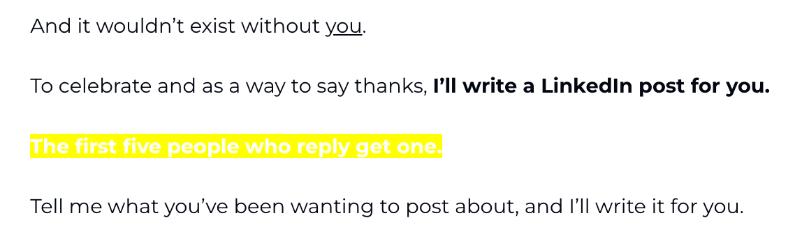 I offered a free LinkedIn post, but the details looked like I was using invisible ink, and it was especially brutal if your phone was in Dark Mode.