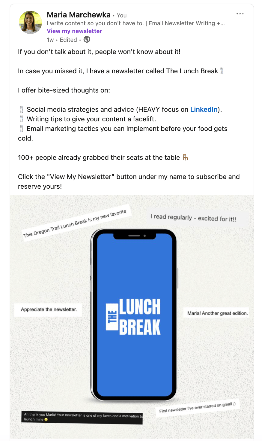 That’s how I led off my LinkedIn post that promoted The Lunch Break🍴